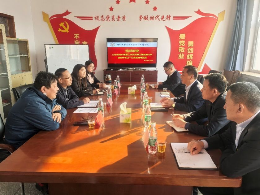 本次会谈主要围绕校企合作与学生就业问题展开。首先,高峰对山东地矿二水赵新村一行人员的到访表示热烈欢迎,并对学院师资力量、研究成果、技术优势、人才培养、学生实习就业和社会服务等相关情况进行了介绍。随后赵新村对单位的机构建设、业务范围、未来发展方向、人才需求及培养等相关情况进行了介绍。会上双方就实习实践基地建设、人才培养、科研合作、技术创新、产学研深度融合等方面进行了深入探讨,双方均希望开展全方位合作,依托双方优势,提升合作层次、创新合作方式,推进双方共同高质量发展。