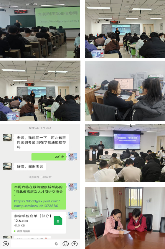 一是开展劳动观就业观引导。学院通过主题班会、优秀校友分享会等形式,强化思想引领,引导学生树立崇尚劳动、爱岗敬业的就业观念,摒弃“等靠要”思想。二是提供就业指导咨询。依托“水韵职梦工作坊”,开设咨询和答疑,为学生提供简历优化、面试模拟、政策解读等“一对一”服务。三是组织职业生涯规划指导。结合学院专业特色与行业发展趋势,帮助学生明晰职业发展路径。四是强化职业技能培训。联动水务集团、环保企业等校企合作单位,开展水质检测实操、环境影响评价实务、水文数据分析等实习时间活动,切实提升学生岗位适配能力。五是落实就业优先推荐。建立建档立卡学生就业信息台账,动态更新求职意向与岗位需求,通过专场招聘会、企业直推等方式,为学生争取优质就业机会。