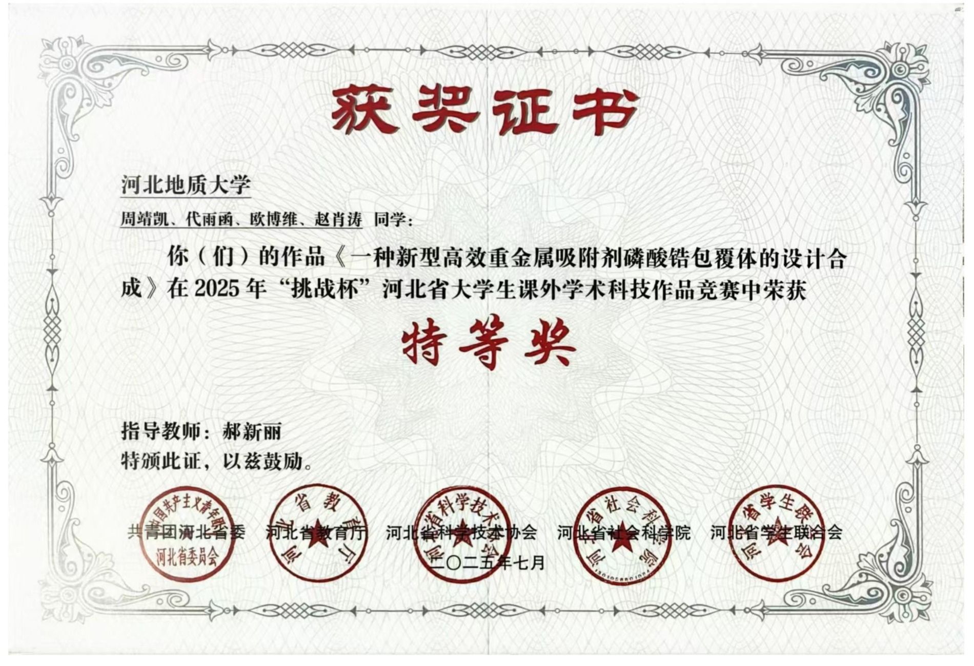 参赛的这段经历,是一段值得反复回味的旅程,而名次只是水到渠成的注脚。从项目启动的那一刻起,老师就告诫他们:“科研,容不得半点马虎,必须认真严谨。”周靖凯和团队将这句话铭记于心。从实验方案的设计执行,到样品的表征测试,再到申报书的撰写与润色,每一个环节都渗透着“严谨”二字。他们经历了数不清的实验与争吵,一百多G的群文件堆成了数字小山,一次次修改打磨PPT,申报书逐字推敲到标点。最终,他们成功将最初的设想变成了可稳定复现的磷酸锆包覆体。回头看,最大的收获不是奖状,而是把“不可能”改写成“已完成”的能力与底气。