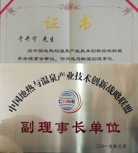 中国地热与温泉产业技术创新战略联盟副理事长
