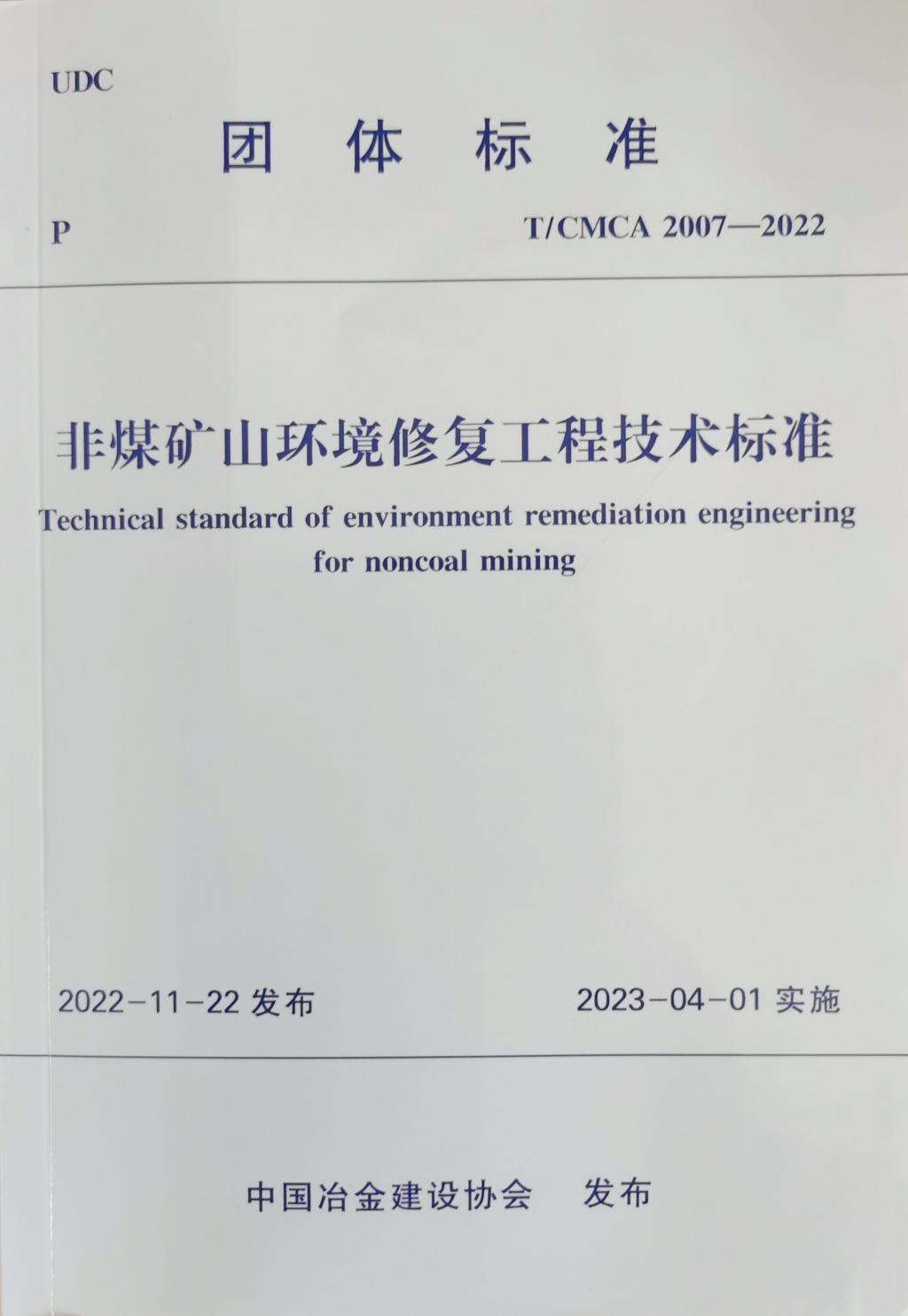 团标《非煤矿山环境修复工程技术标准》(团标T/CMCA 2007-2022)