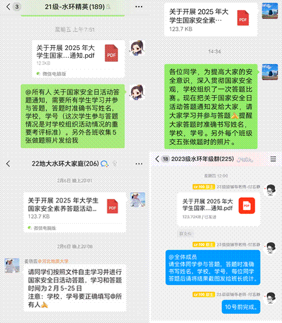 2025年4月15日将迎来了第十个全民国家安全教育日。为深入贯彻总体国家安全观,加强国家安全教育在高校的普及,学院积极响应号召,寒假期间各年级组织学生通过线上“国家安全素养展示平台”进行学习和答题。活动覆盖了学院各年级的学生,参与度高,范围广,有效提升了Beat365官网学生的安全意识和素养。