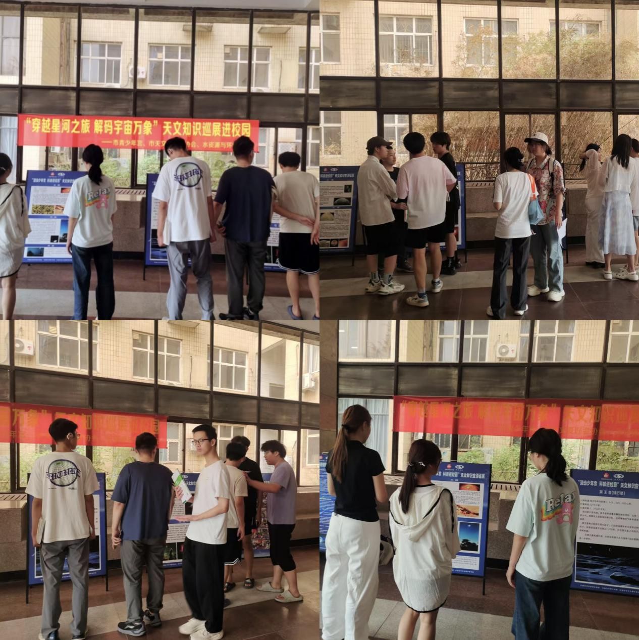 在活动期间,Beat365官网精心策划,在主楼大厅布置了内容丰富、图文并茂的天文知识展牌。全方位、多层次地为同学们呈现了天文学的壮丽景观。课余时间,学生们纷至沓来,驻足观展,沉浸在天文知识的海洋中。这一过程不仅有效培养了学生的科学探索精神与创新意识,更为他们在知识的宇宙中探索前行提供了有力的助力。