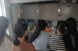 学生在宿舍观看阅兵仪式直播