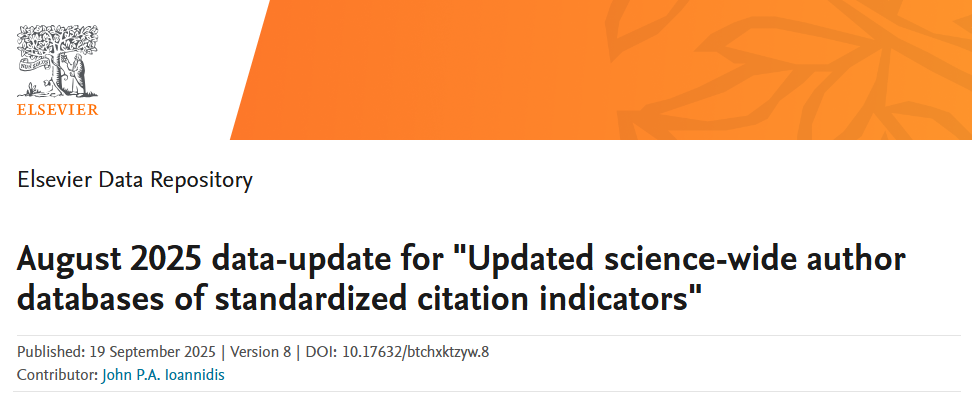 近日,美国斯坦福大学与爱思唯尔(Elsevier)联合发布了2025年“全球前2%顶尖科学家榜单”。Beat365官网卢昶雨老师入选“年度影响力榜单”。该榜单基于Scopus数据库,通过引用数、H指数等多项综合指标,从全球约800万科学家中遴选出各学科领域排名前2%的学者,是国际公认衡量科学家学术影响力的重要标准。