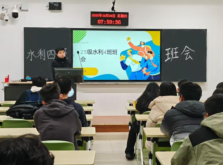 水利类1班王丹老师以“新生・新翼・新程”为主题,聚焦学习、生活、实践。她强调专业课是立身之本,鼓励学生杜绝松懈、稳扎稳打学知识点,力争考试一次通过;提醒重视宿舍安全卫生,倡导参与学科竞赛、志愿服务与科研项目,并结合专业特色和学生优势提供生涯规划建议,助其厘清成长思路。