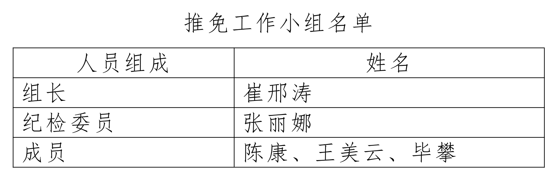 第四条 学院成立由党政负责人任组长的推荐工作小组,成员包括主管教学、科研、学生工作的领导、学院纪检委员、专业负责人等。推荐工作小组,负责本单位推免工作的具体实施,包括制定推免工作细则、组织综合评定、公示拟推免名单、协调本单位推免工作实施以及推免过程中的争议处理等。推免工作小组名单