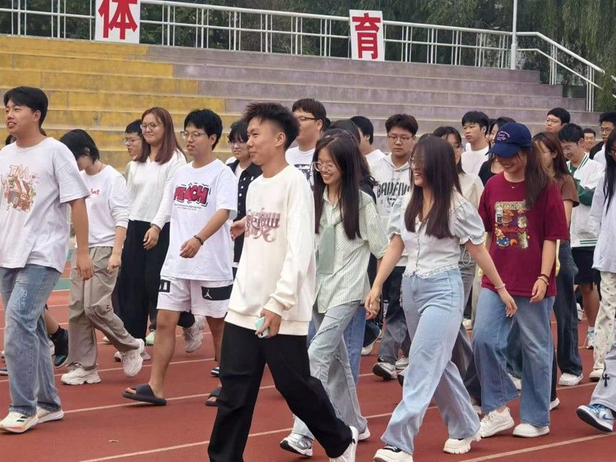 活动分为两个环节:首先是集体健步走,同学们在文体部的组织下,以部门为单位有序出发,沿着校园路线,感受着秋季的校园美景和户外的新鲜空气。师生们的欢声笑语,为校园增添了节日的喜庆气氛。
